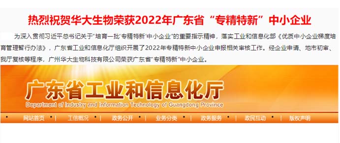 喜報丨祝賀華大生物榮獲廣東省“專精特新”中小企業和廣州市“專精特新”扶優(yōu)計劃培育企業
